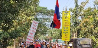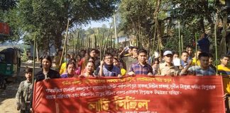 খাগড়াছড়ির পানছড়িতে বিপুল, সুনীলসহ ৪ নেতা হত্যার প্রতিবাদে কুদুকছড়িতে লাঠি মিছিল