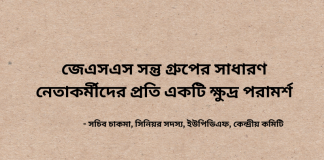 জেএসএস সন্তু গ্রুপের সাধারণ নেতাকর্মীদের প্রতি একটি ক্ষুদ্র পরামর্শ