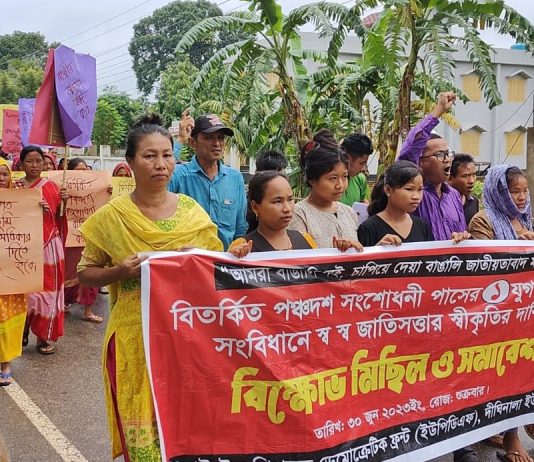 স্ব স্ব জাতিসত্তার সাংবিধানিক স্বীকৃতির দাবিতে মানিকছড়িতে ইউপিডিএফের বিক্ষোভ মিছিল ও...