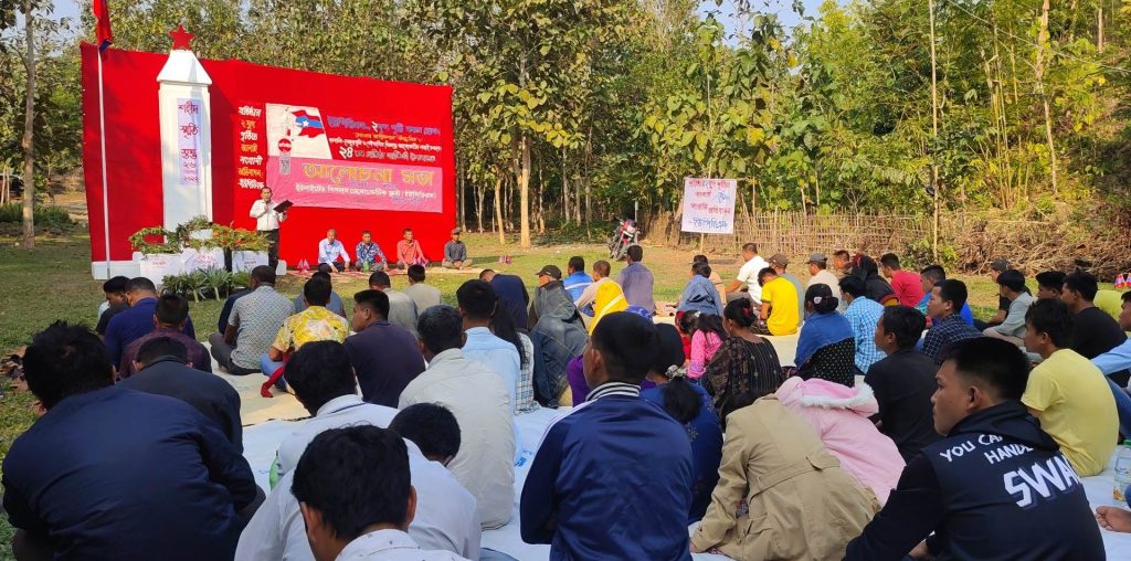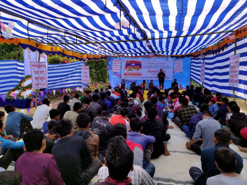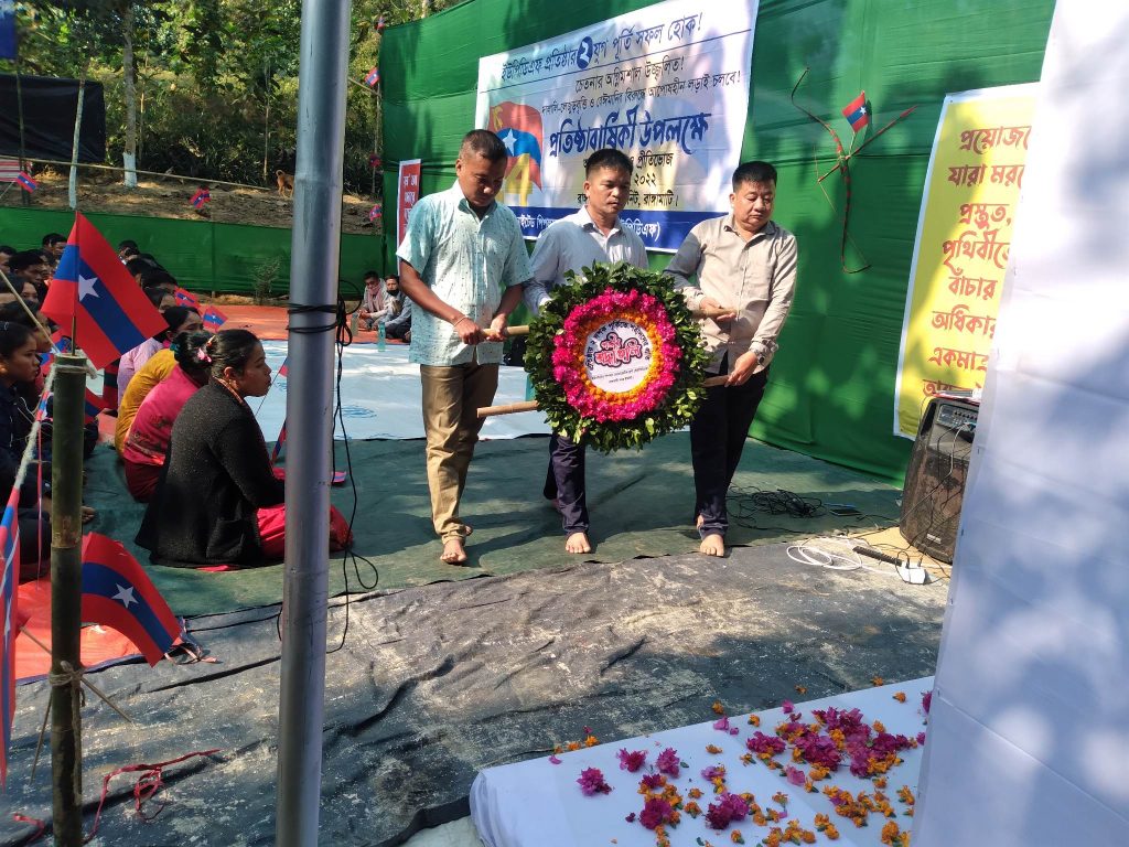 অস্থায়ী স্মৃতিস্তম্ভে ফুল দিয়ে শহীদের প্রতি শ্রদ্ধা নিবেদন করা হচ্ছেইউপিডিএফ পতাকার প্রতি স্যলুট জানাচ্ছেন নেতা-কর্মী ও সমর্থকরাআন্দোলনে অবিচল থাকার শপথ গ্রহণআলোচনা সভা