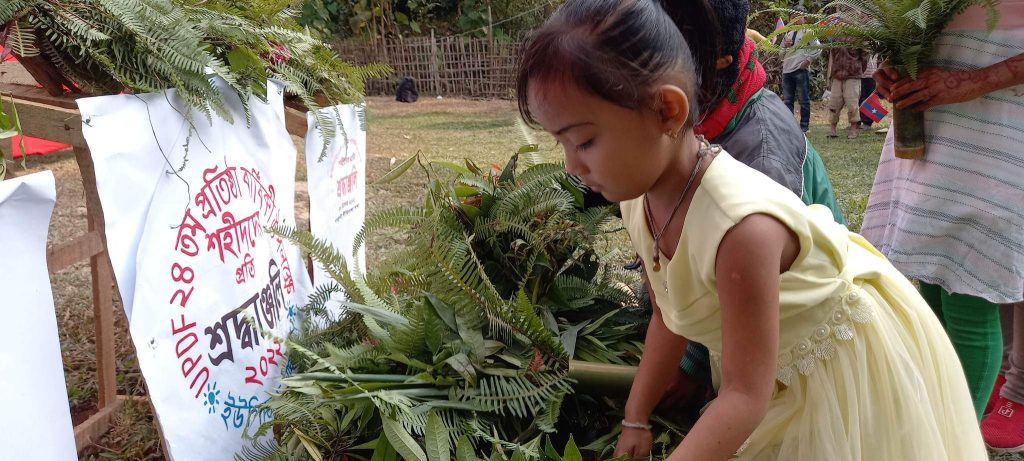 শহীদদের প্রতি শ্রদ্ধা নিবেদন ও সম্মান প্রদর্শনঅস্থায়ী স্মৃতিস্তম্ভে ফুল দিয়ে দিয়ে শহীদদের প্রতি শ্রদ্ধা জানাচ্ছেন শিশুরাইউপিডিএফের পতাকা উঁচিয়ে ধরে শিশু-কিশোররা আনন্দ করছেআলোচনা সভা