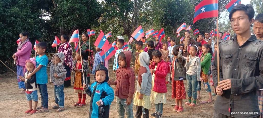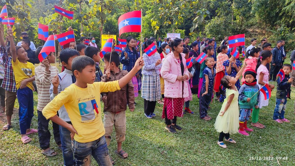 আলোচনা সভাইউপিডিএফের পতাকা হাতে অনুষ্ঠানে অংশগ্রহণকারী শিশু-কিশোর ও জনতা
