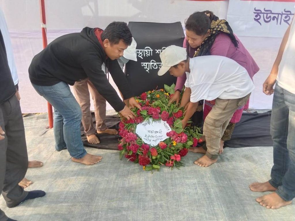 অস্থায়ী স্মৃতিস্তম্ভে পুষ্পস্তবক অর্পণ করে শহীদদের প্রতি শ্রদ্ধা নিবদেনআলোচনা সভা