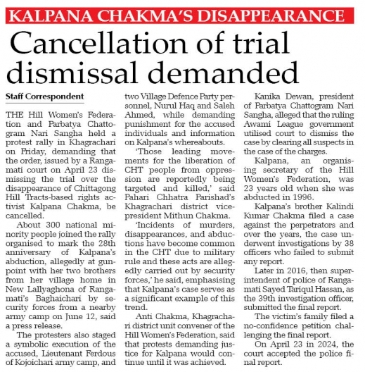 He said, “The demonstrations demanding justice for the Marma schoolgirl’s rape were deliberately obstructed, and the settlers were incited to carry out communal attacks on the Pahari communities to protect the rapists.”
