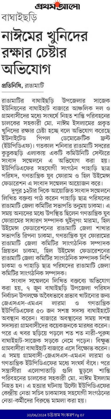 খাগড়াছড়ি ও গুইমারায় সাম্প্রদায়িক হামলা নিয়ে ইউপিডিএফের প্রতিবেদন প্রকাশ