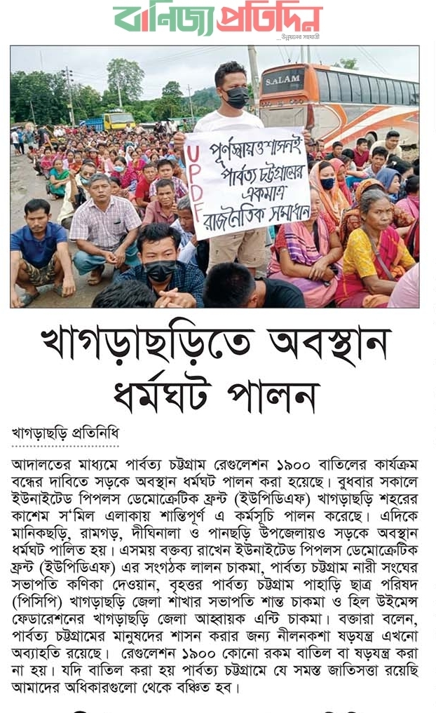 Earlier, on Sunday, the UPDF observed a general strike in Panchhari upazila of the district.